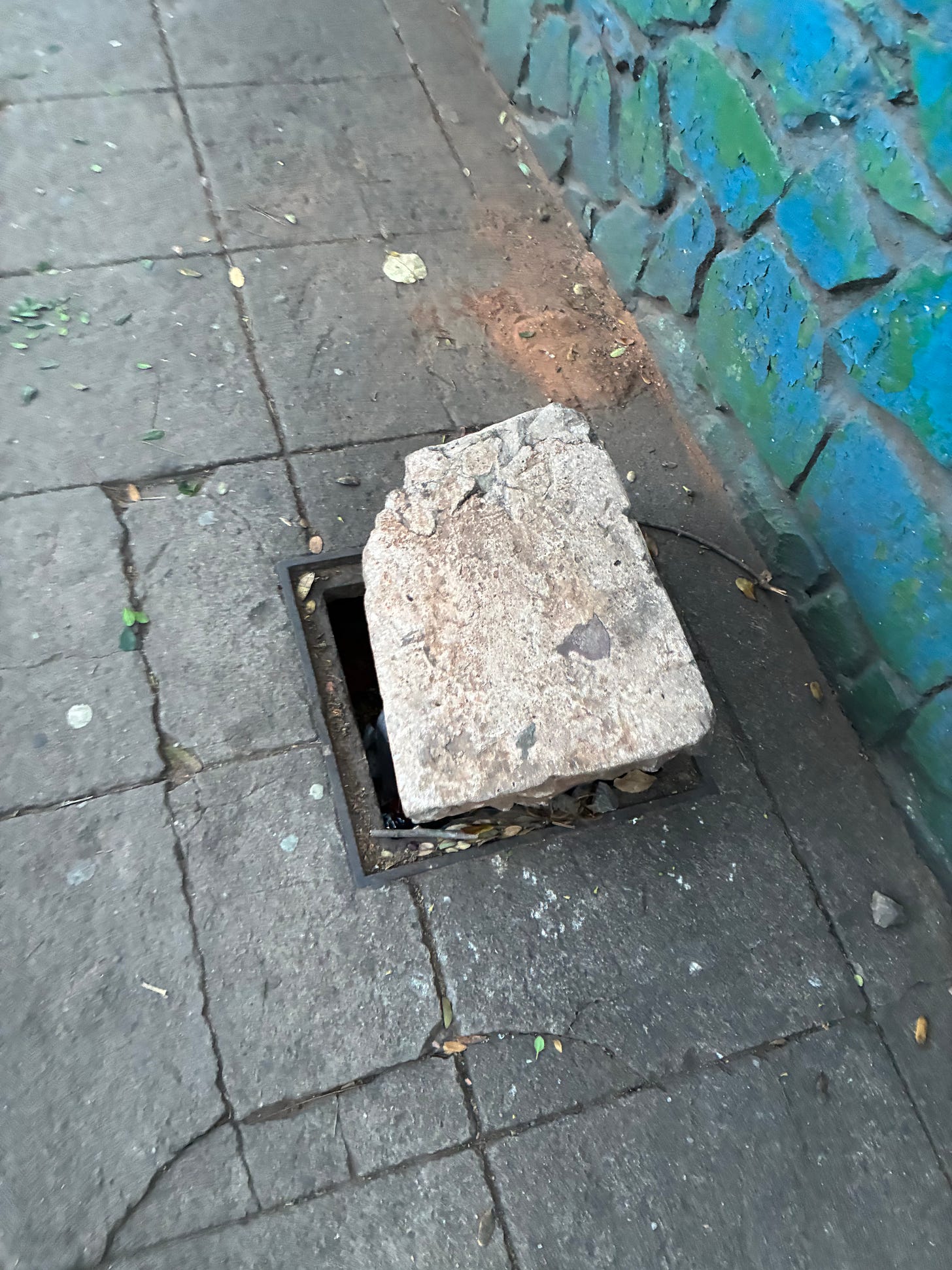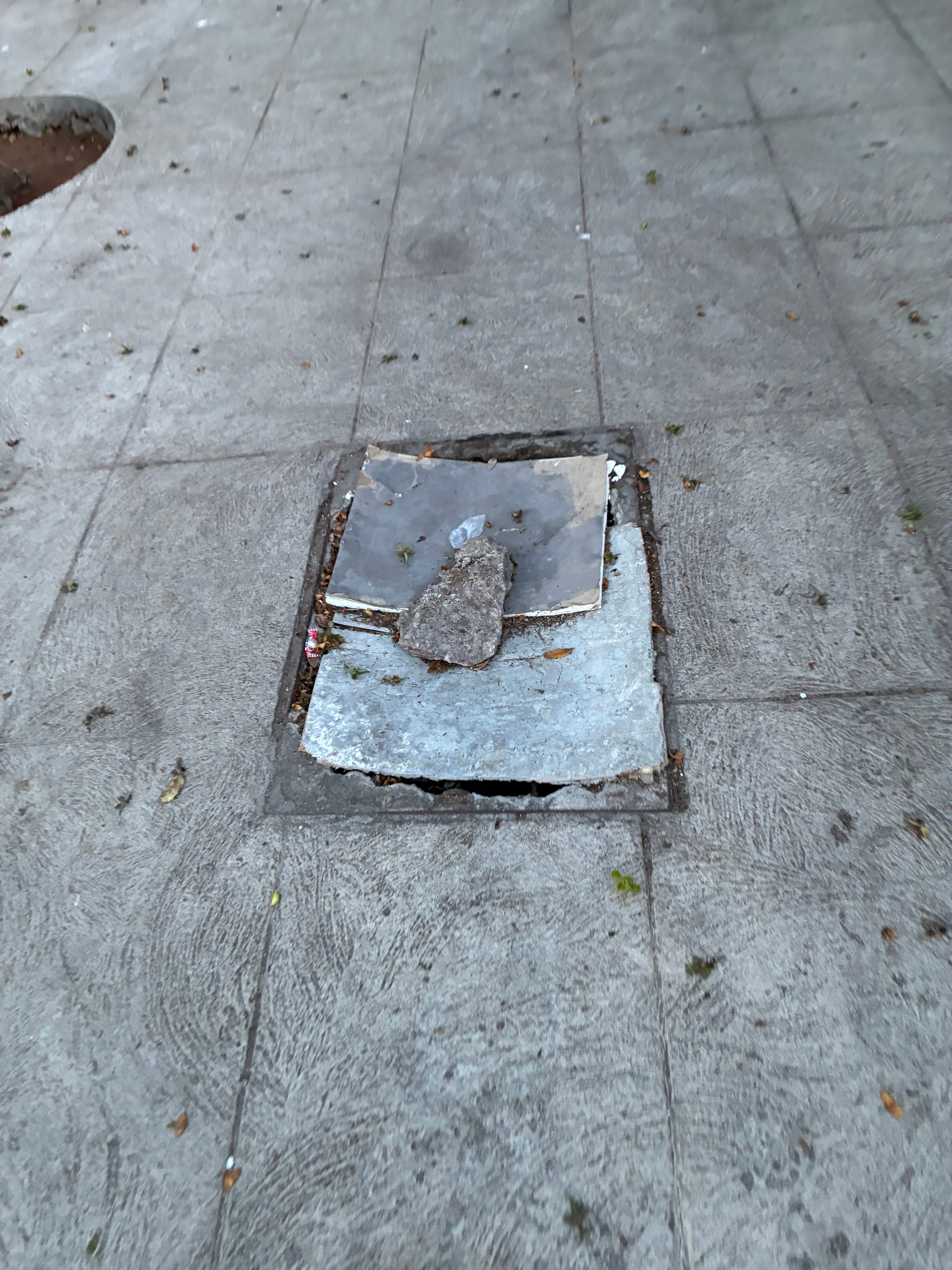 > But there are a lot of sudden deep holes in the sidewalk. This is because manhole covers are stolen and sold for scrap, according to a police officer.