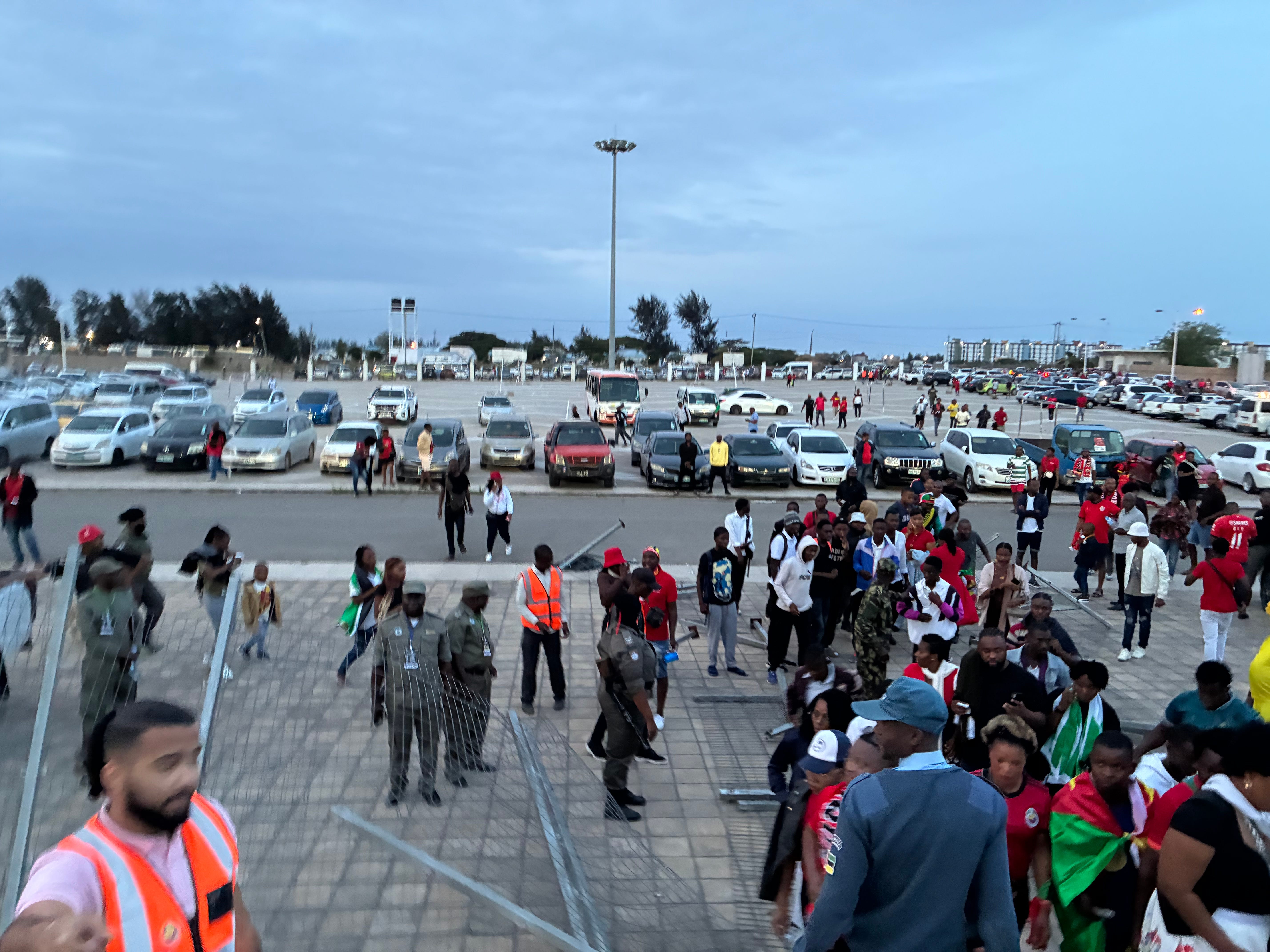 I went with a GIZ consultant on his first trip to Africa, and his first time at a football match outside of Europe. The first surprise came as we approached the steps to the main gate: Guinea scored in the second minute, and the crowd of Mozambicans still arriving heard the cheers, shoved forward, and pushed over the fences around the turnstiles.